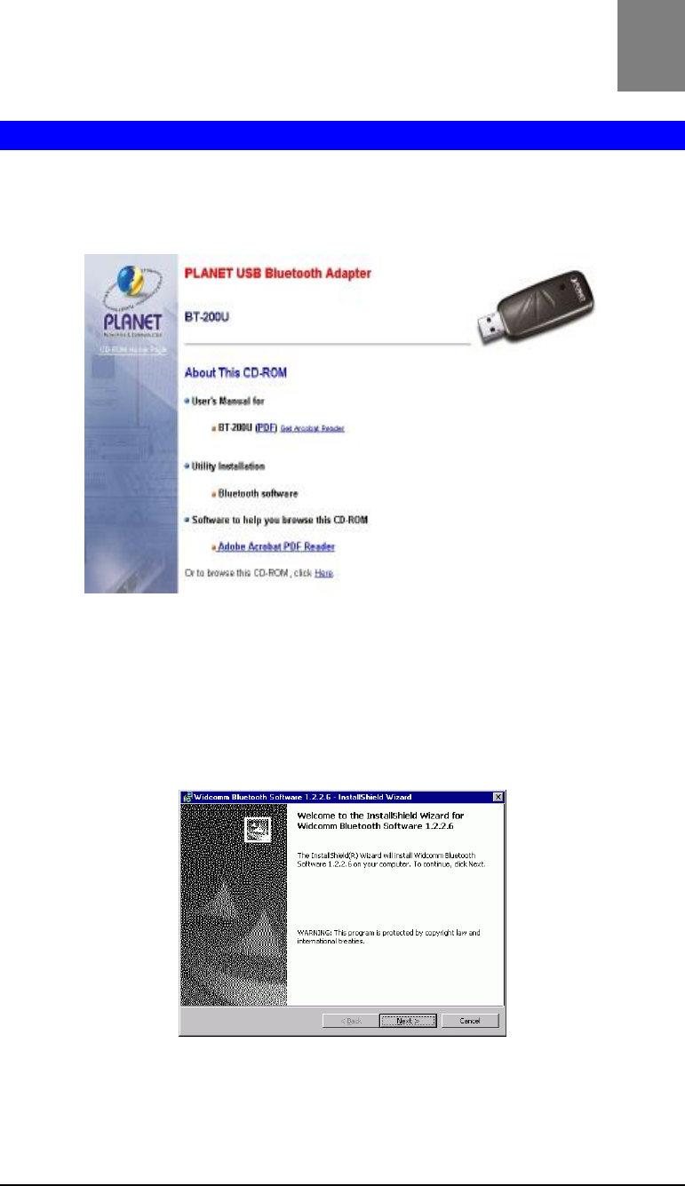 Note: The Bluetooth Software should be installed well prior to the hardware installation.