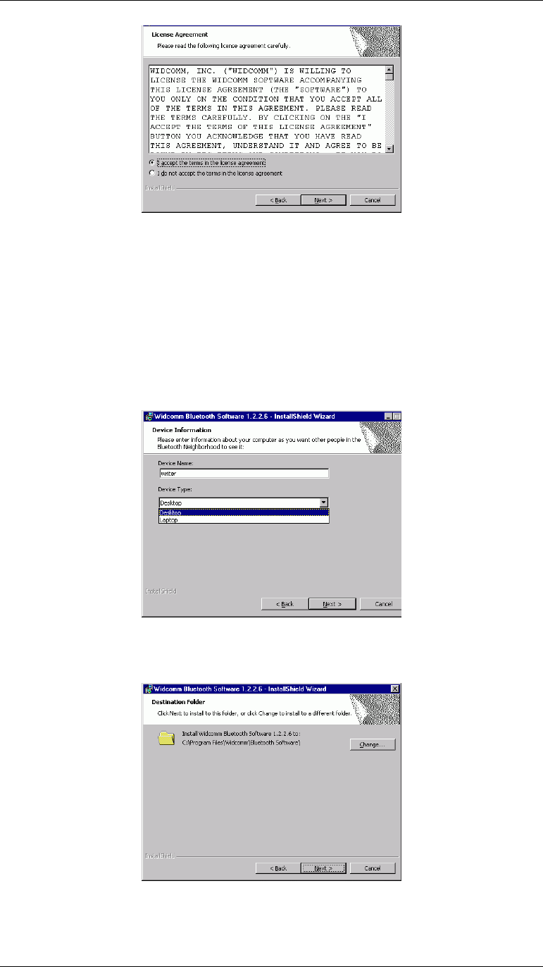 destination folder for the Bluetooth software. Otherwise, click the Next button to ac-