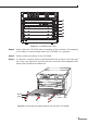 6 5 4 3 2 1 Figure 2-1 CS-6306R Front Panel Step 1 Power down the CS-6306R before installing all the modules. Hot-swapping of a module is recommended when the CS-6306R is in operation. Step 2 Ensure proper grounding of the CS-6306R. Step 3 To remove a module, loosen counterclockwise the screws on the right and left. Then, the right lever and the left lever should be lifted upward at the same time and pull the module out.