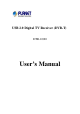 Chapter 1 Introduction Planet DTR-100D is DVB-T Digital TV receiver that offers a complete and cost effective solution for Digital TV broadcasting. Planet DTR-100D connects Digital TV with your computer/notebook, DTR-100D not only allows you to watch Free-To-Air digital terrestrial television channels with no subscription to pay but also can record real time digital TV programs directly to the hard disk in your computer/notebook.