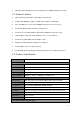 C.7 RJ-45 Console Cable The ping out of the RJ-45 console cable bundled in the package is as following: 1…………………………………..8 2…………………………………..7 3……………………………………6 4…………………………………..5 5…………………………………..4 6 32 1 6 321 6…………………………………..3 7…………………………………..2 6 3 21 8…………………………………..1 C.8 DB9 to RJ45 The pin out of the DB9 to RJ-45 accessory bundled together with the package are as following. DB9 RJ45 1………………………………..4 2………………………………..6 3………………………………..3 4………………………………..2 5………………………………..5 6………………………………..7 7……………………………….