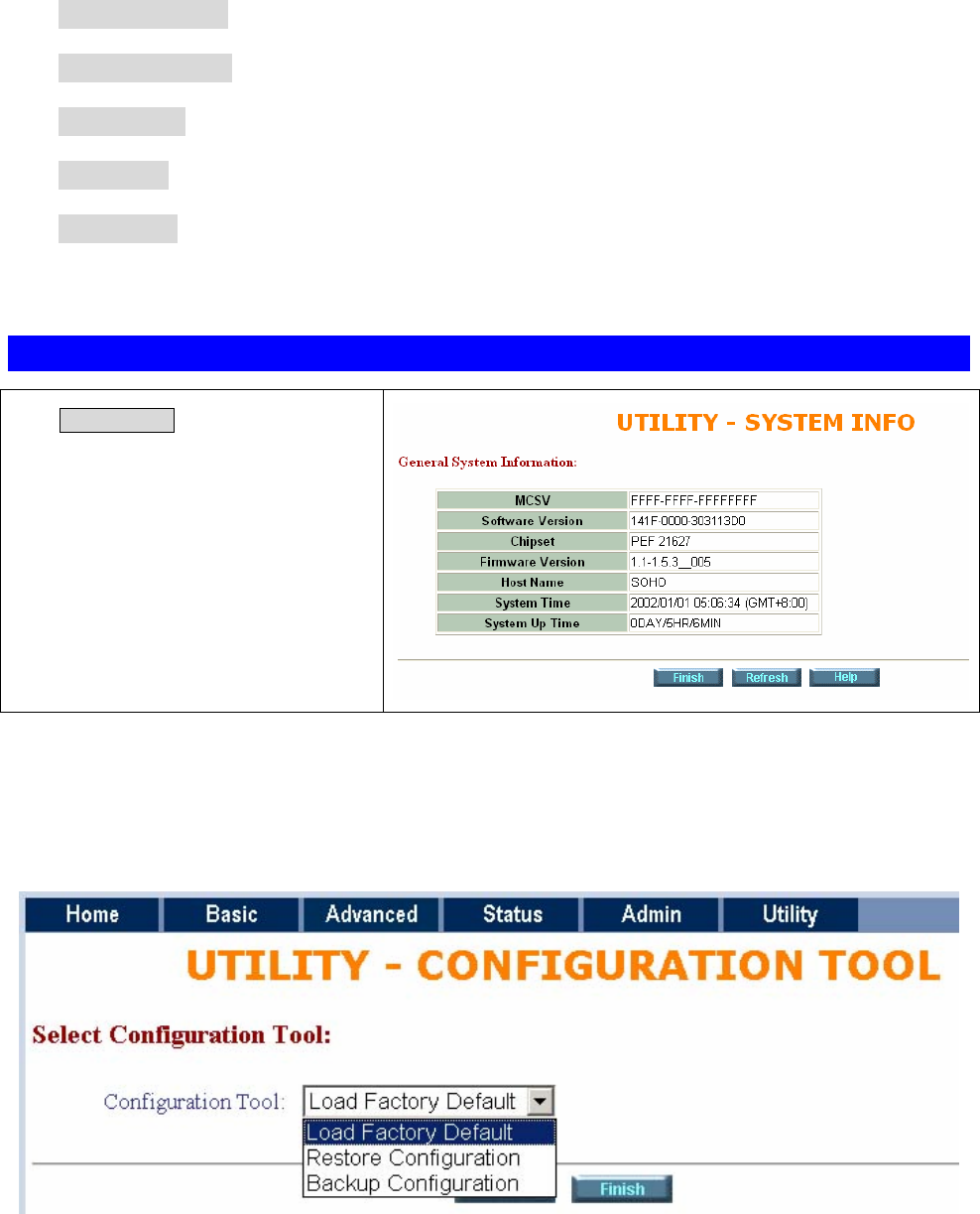 This configuration tool has three functions: load Factory Default, Restore Configuration,