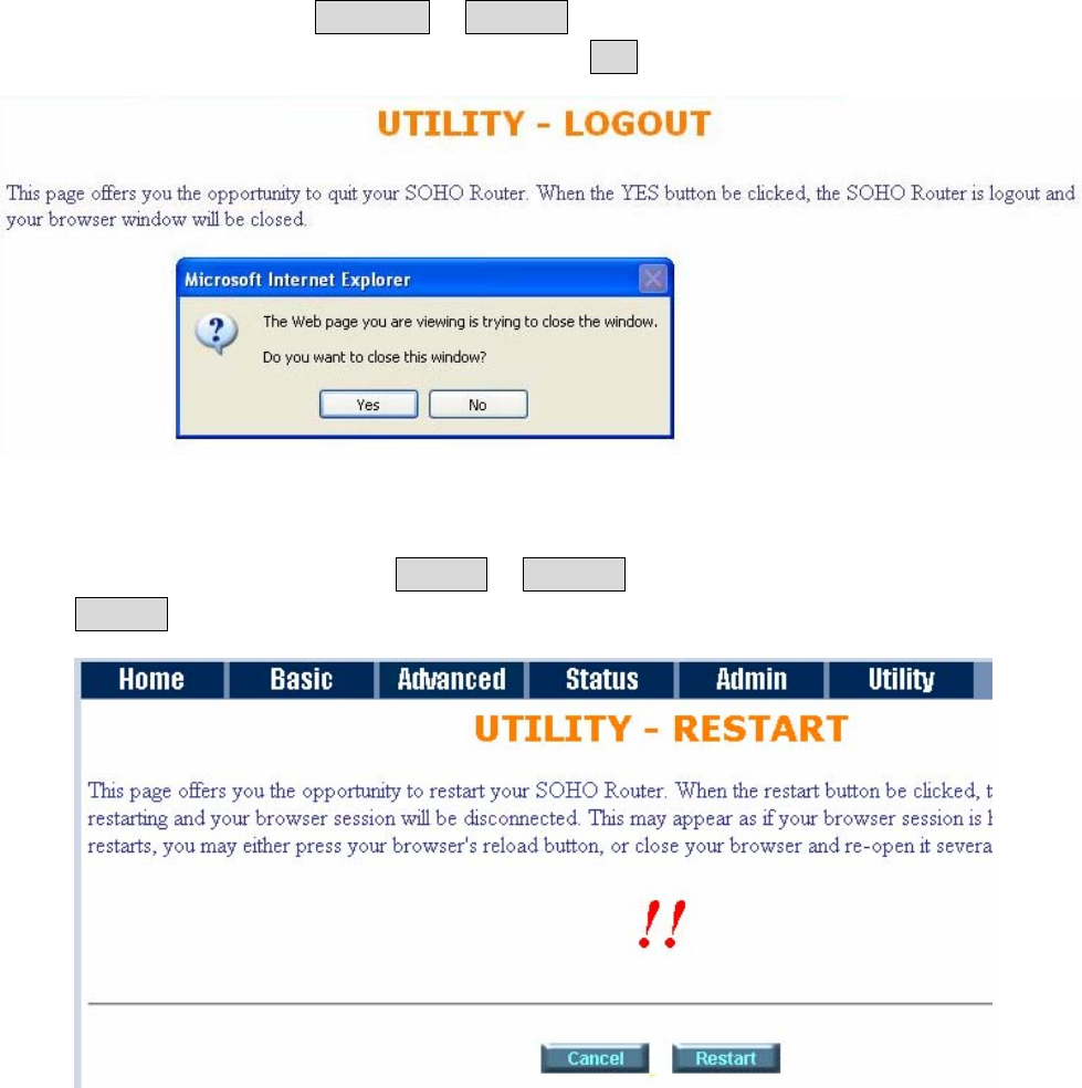 The browser will prompt the logout window. Press Yes to logout GRT-501.