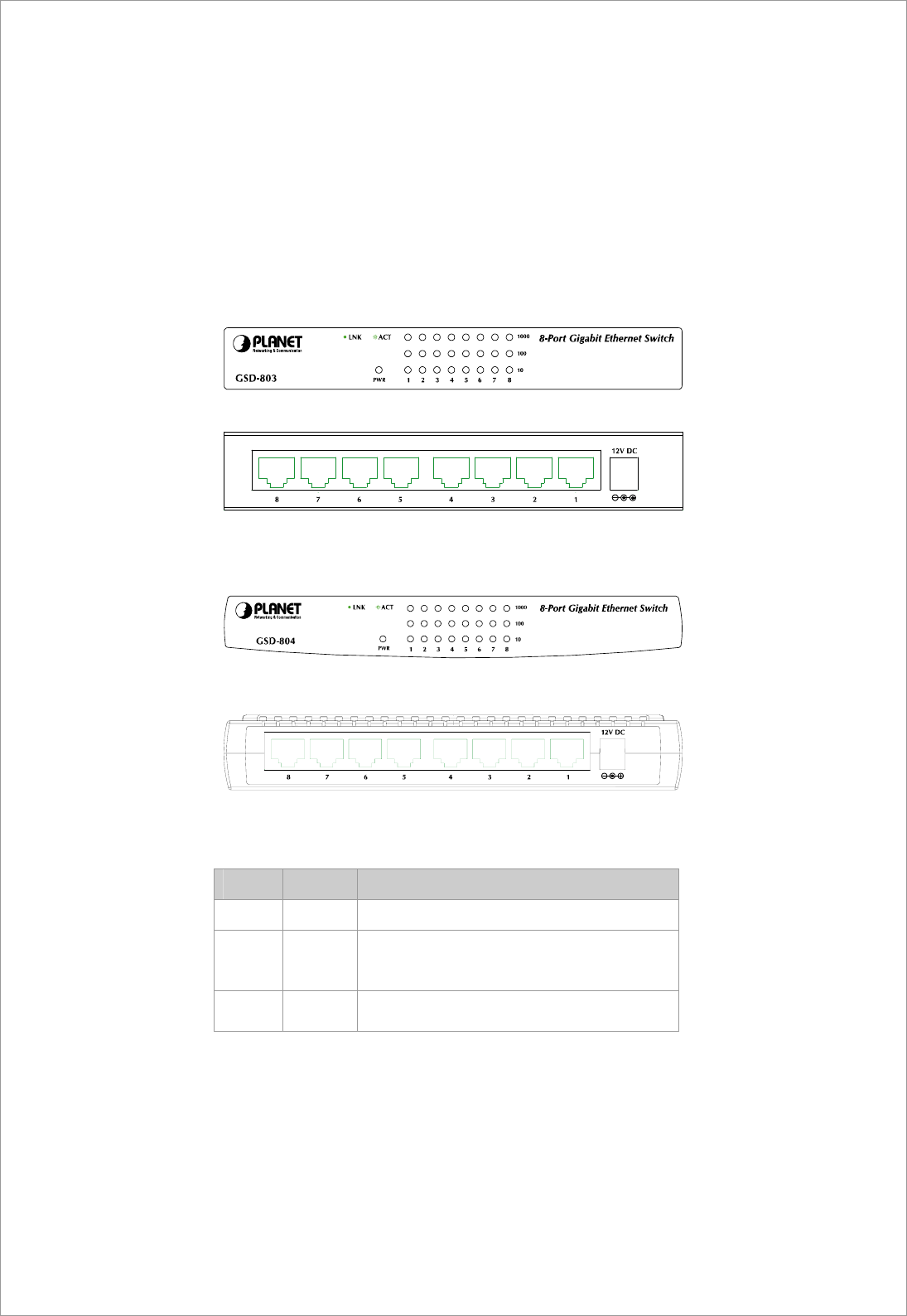 Figure 2-7 & 2-8 show the front panel and rear panel of GSD-804