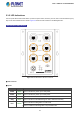 The front panel of the Industrial Managed Switch provides one M12 A-coded 5-pin male connector for DC power input.