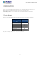 User’s Manual of IGS-6325 Series 1.3 How to Use This Manual This User’s Manual is structured as follows: Section 2, INSTALLATION The section explains the functions of the Industrial Managed Switch and how to physically install the Industrial Managed Switch. Section 3, SWITCH MANAGEMENT The section contains the information about the software function of the Industrial Managed Switch. Section 4, WEB CONFIGURATION The section explains how to manage the Industrial Managed Switch by Web interface.