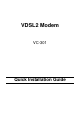 Package Contents The following items should be included: • VC-301 Unit • 1 RJ-45 (LAN) cable • 2 RJ-11 (VDSL2) cable • Power Adapter • VDSL Splitter • Quick Installation Guide If any of the above items are damaged or missing, please contact your dealer immediately.