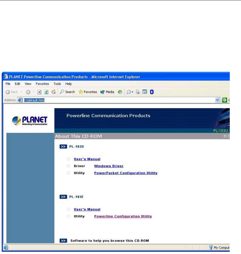 2. Click on the “Powerline Configuration Utility” hyperlink in PL-103E or PL-103U