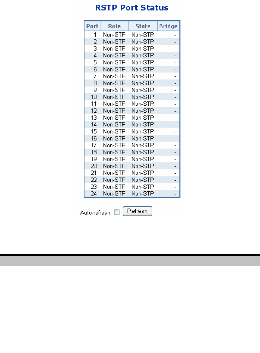 This page displays the RSTP port status for port physical ports in the currently selected switch.