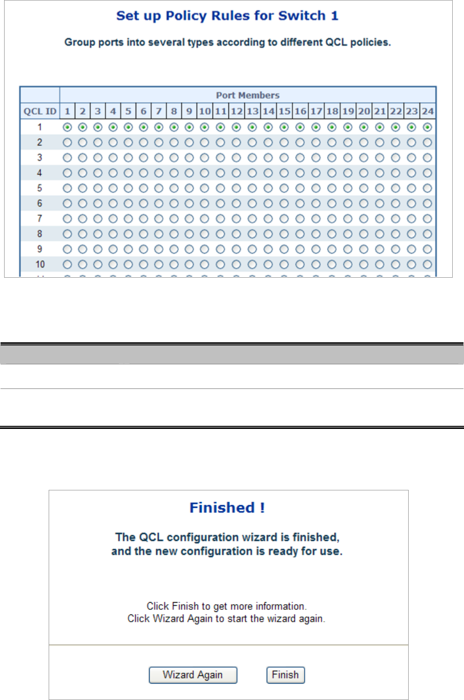 A row of radio buttons for each port is displayed for each QCL ID. To include a