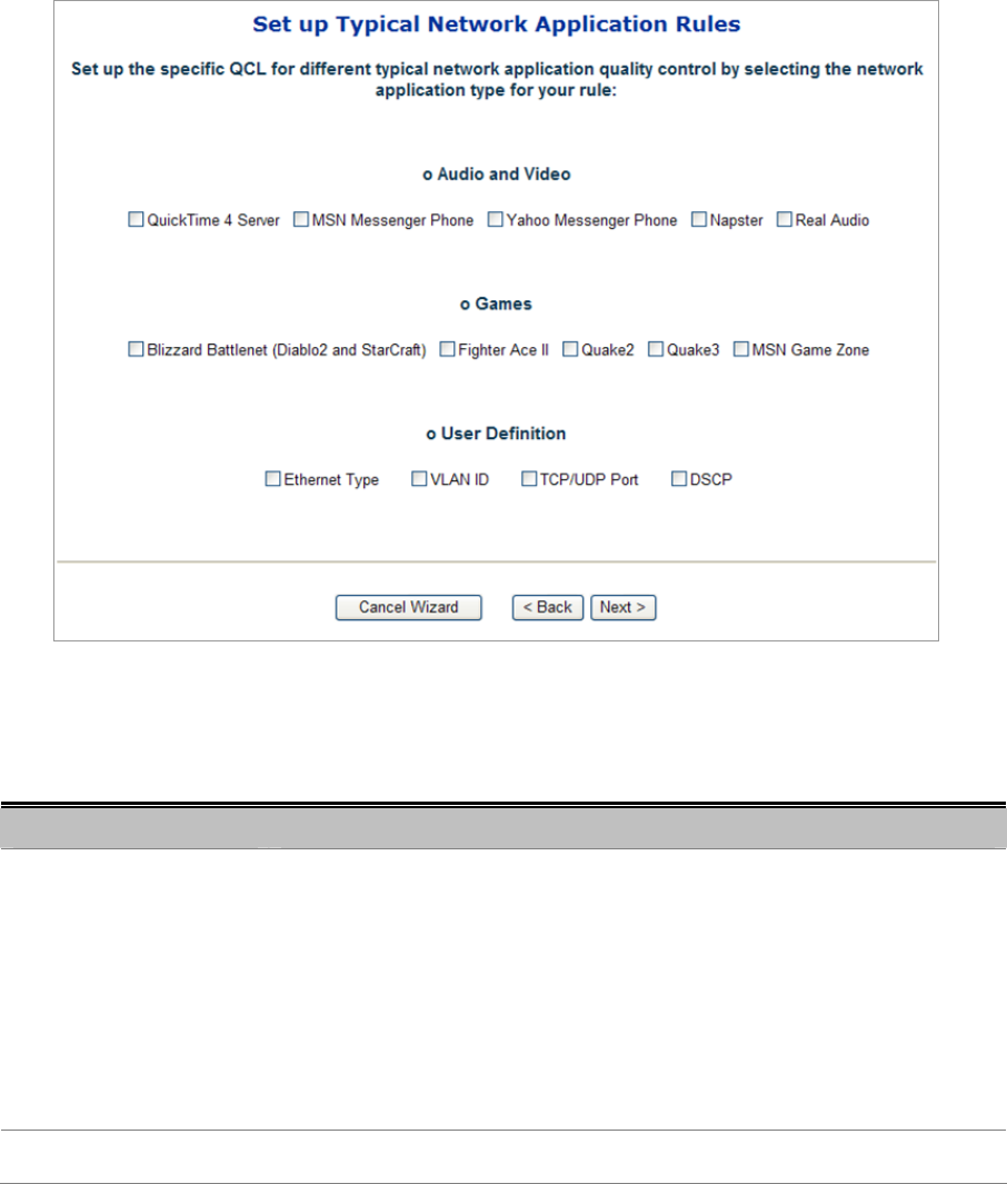 Set up the specific QCL for different typical network application quality control by selecting the network application type for your