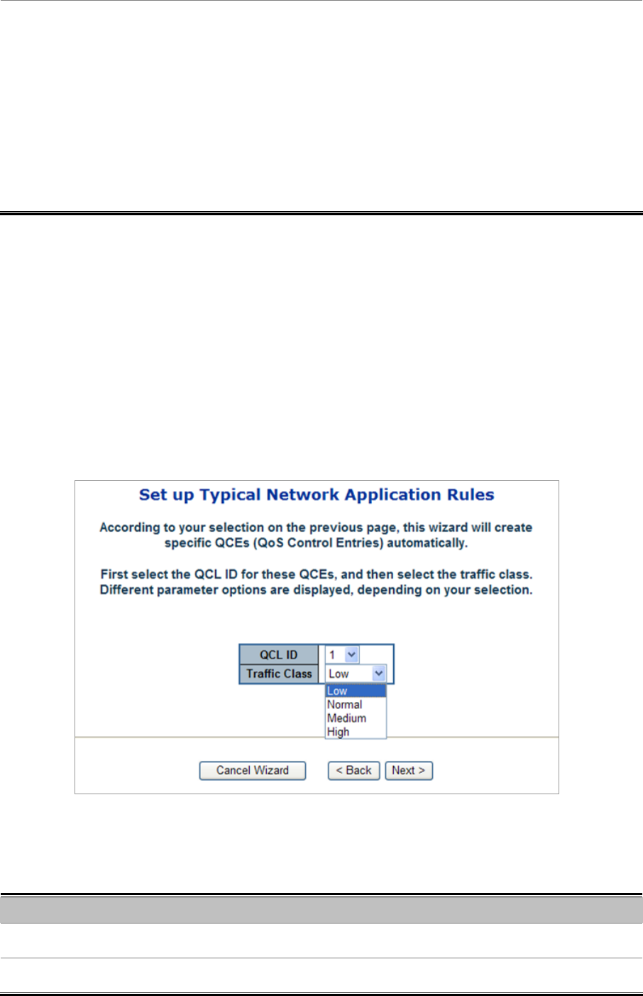 According to your selection on the previous page, this wizard will create specific QCEs (QoS Control Entries) automatically.