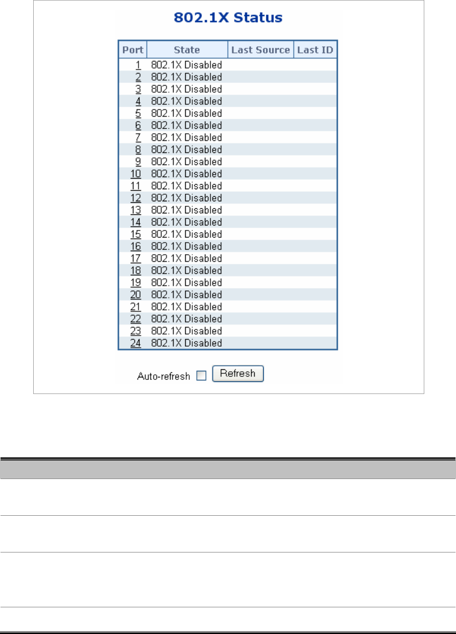 This page provides an overview of the current IEEE 802.1X port states for the selected switch. The 802.1X Port Status screen in