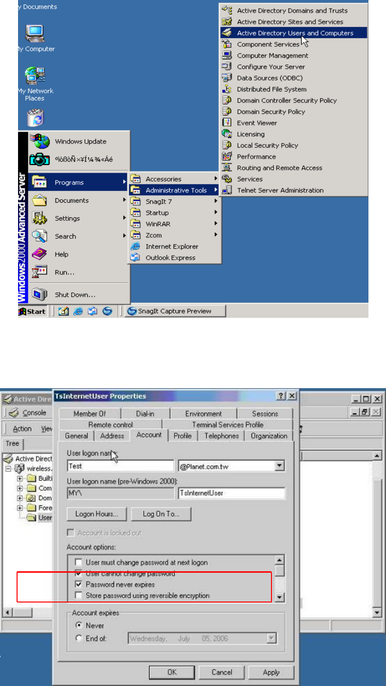 5. Enter ” Active Directory Users and Computers”, create legal user data, the next, right-click a user what you created to