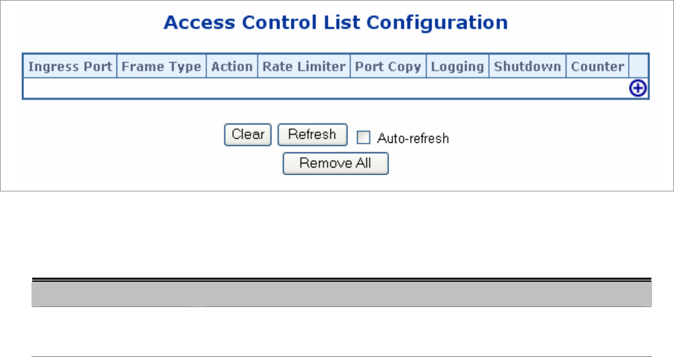 This page shows the Access Control List (ACL), which is made up of the ACEs defined for this Managed Switch. Each row