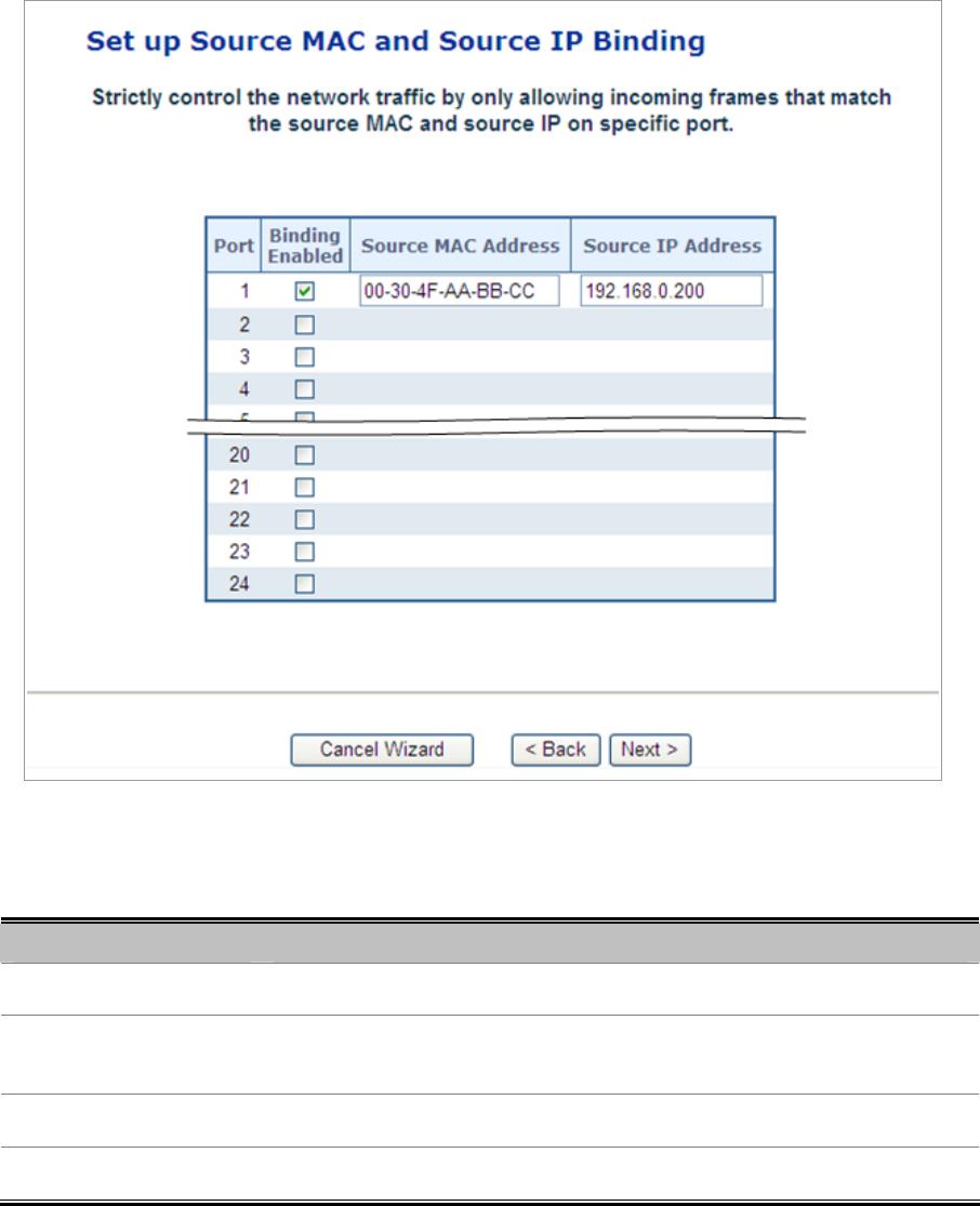 4.11.3.4 Set up Source MAC and Source IP Binding
