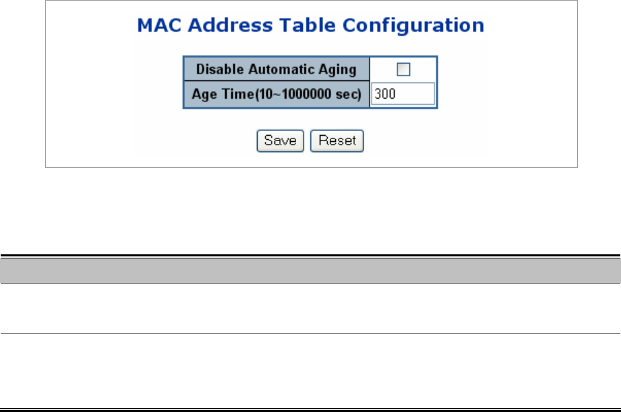 Figure 4-12-1 MAC Address Table Configuration page screenshot