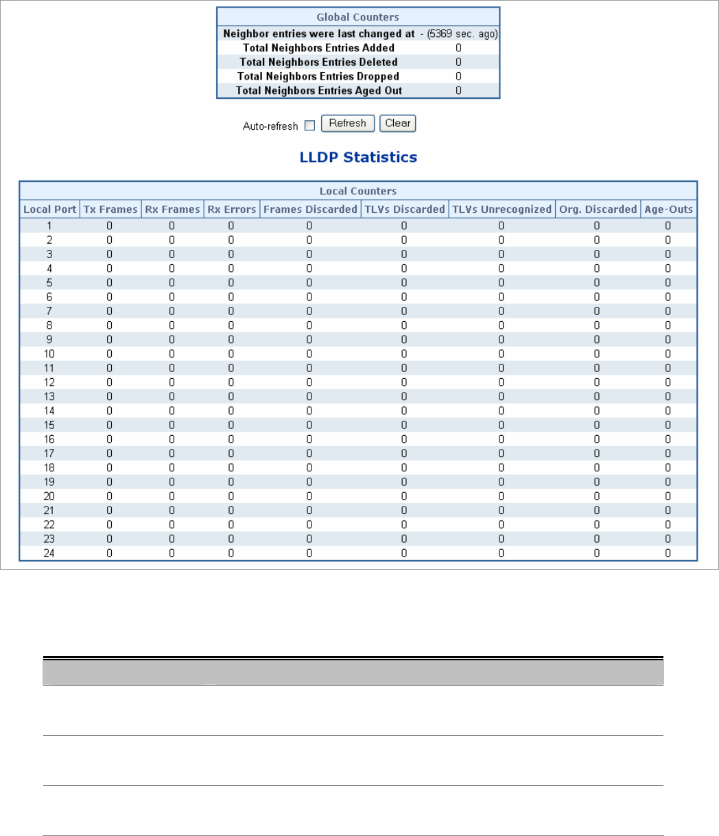 the whole stack, switch, while local counters refers to counters for the currently selected switch. The LLDP Statistics screen in