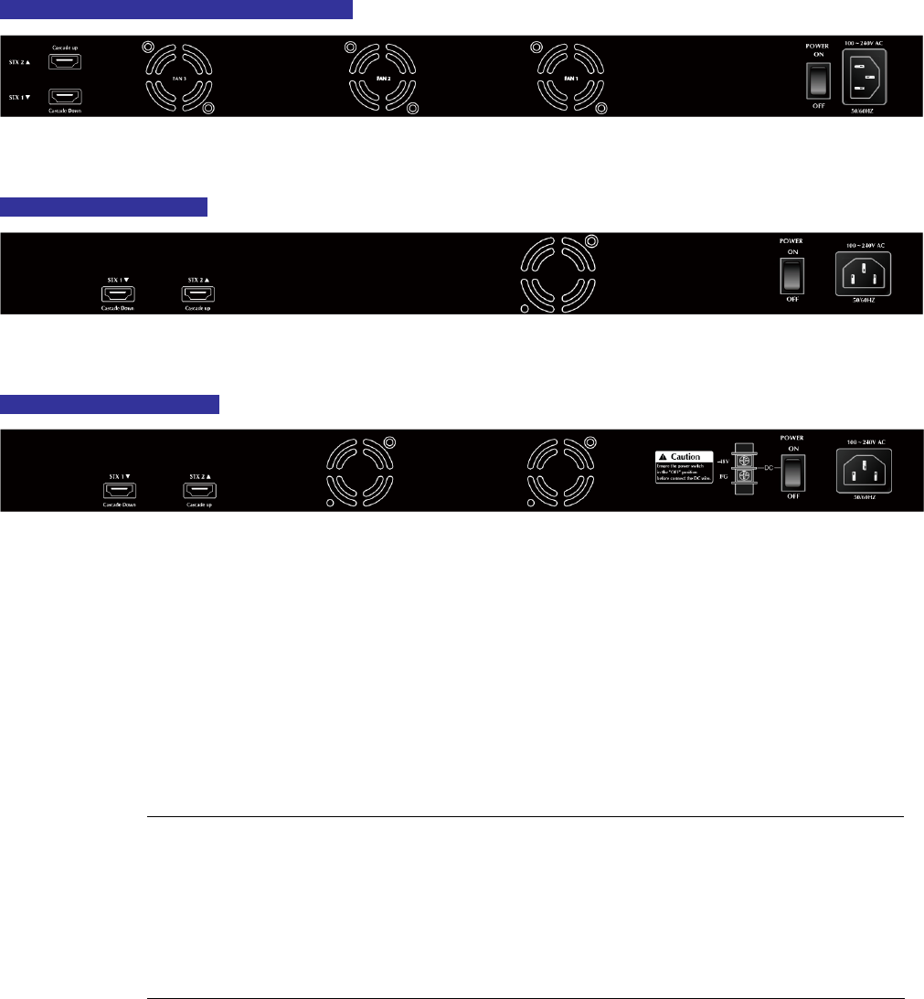 • You can just use attached PLANET CB-STX50 or longer stack cable CB-STX200 connector to stack.