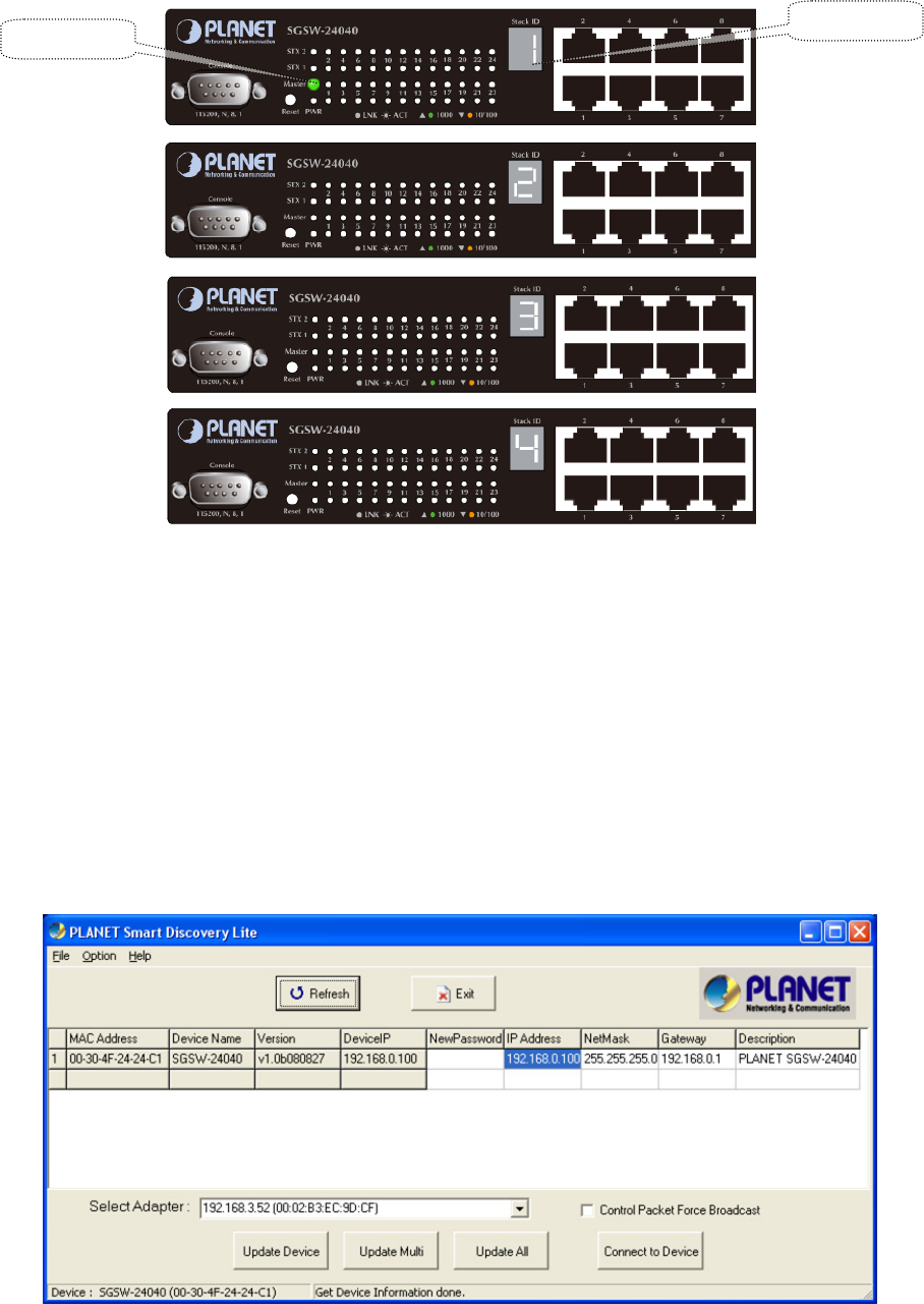Figure 2-28 Use PLANET Smart Discovery Utility to display the IP address of stack master