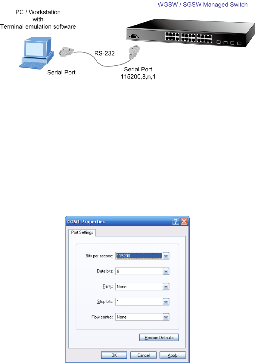 When using this management method, a straight DB9 RS-232 cable is required to connect the switch to the PC. After