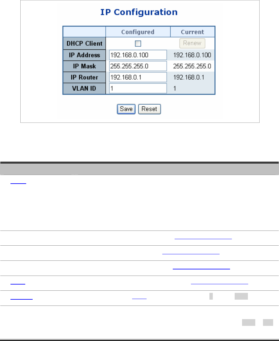 The IP Configuration includes the IP Address, Subnet Mask and Gateway. The Configured column is used to view or change the