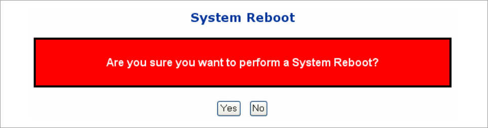 The Reboot page enables the device to be rebooted from a remote location. Once the Reboot button is pressed, user have to