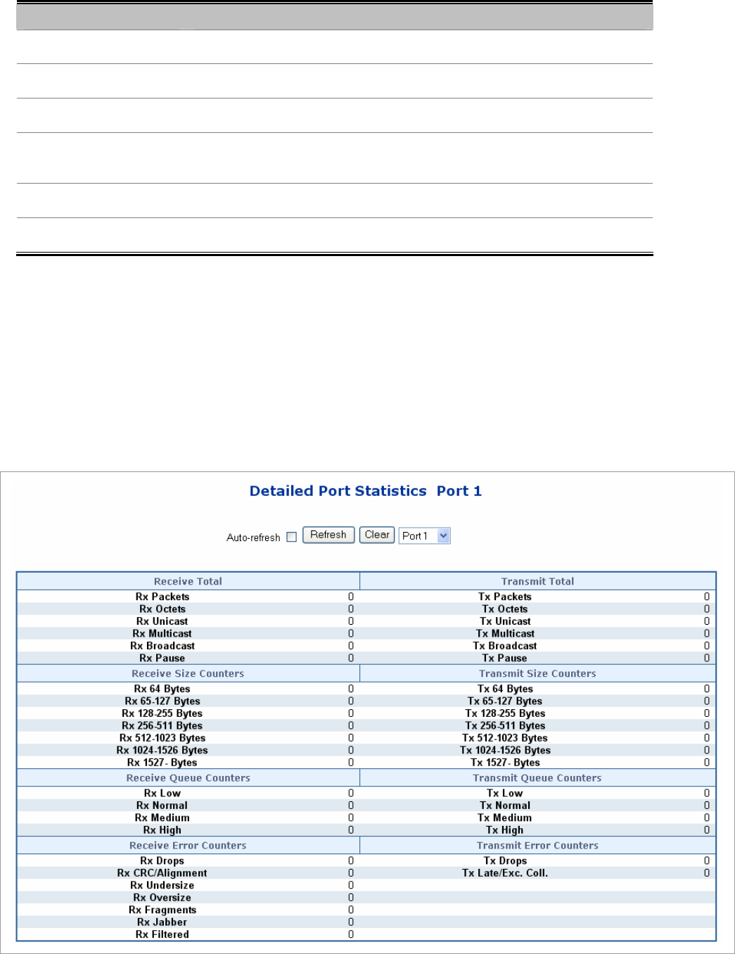 for receive and transmit. The Detailed Port Statistics screen in Figure 4-4-3 appears.
