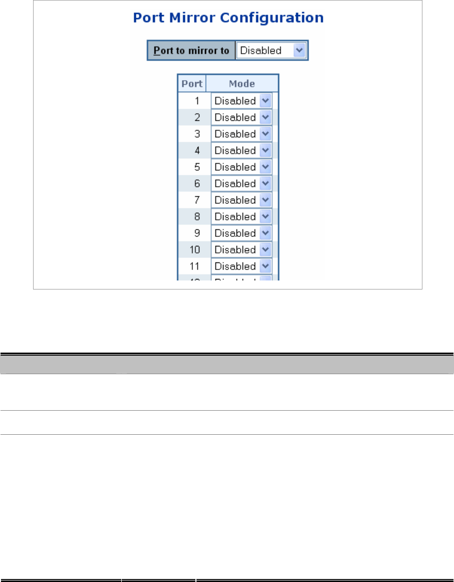 The Port Mirror Configuration screen in Figure 4-4-5 and Figure 4-4-6 appears.