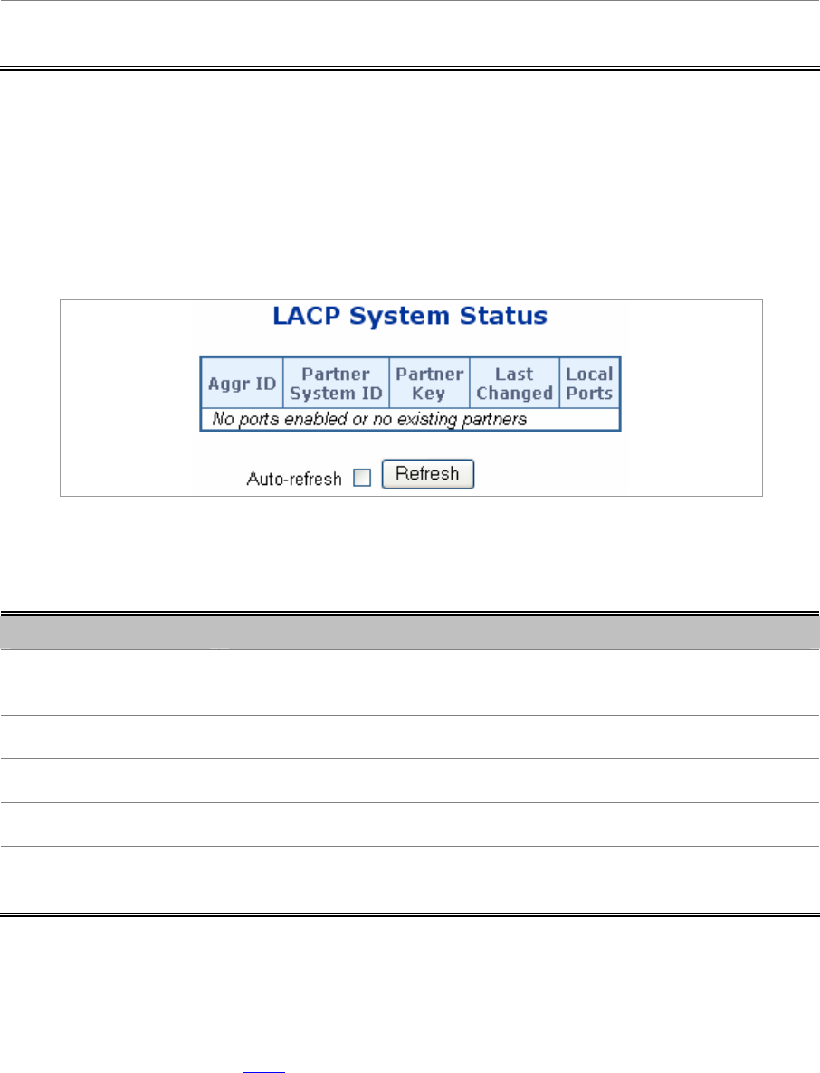 This page provides a status overview for all LACP instances. The LACP Status page display the current LACP aggregation