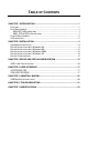 TABLE OF CONTENTS CHAPTER 1 INTRODUCTION ................................................................................. 1 FEATURES .............................................................................................................. 1 DATA REQUIREMENT................................................................................................ 1 ADSLRFC1483 mode user............................................................................... 1 ADSL PPPoE/PPPoA mode user ....................