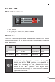 2.2 Front View VC-232G Front Panel VDSL 1000 TP 100 PWR CO VC-232G CPE 10/100/1000 Ethernet over VDSL 2 Converter ¾¾ 10/100/1000BASE-T RJ45 connector ¾¾ BNC female connector for VDSL2 ¾¾ LEDs for power, Ethernet and VDSL ¾¾ CO/CPE mode selectable via DIP switch VC-232G LED Indicators The rich diagnostic LEDs on the front panel can provide the operating status of individual port and whole system. System LED PWR Color Function Lit Indicates that the EoC Converter has power.