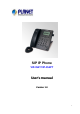 Revision User’s Manual for PLANET SIP IP Phone: Model: VIP-254T/VIP-254PT Rev: 1.0 (2008, May) Part No. EM-VIP254V1.