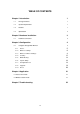TABLE OF CONTENTS Chapter 1 Introduction 1 1.1 Package Contents 1 1.2 System Requirements 1 1.3 Features 1 1.4 Specification 2 Chapter 2 Hardware Installation 2.1 3 Hardware Connection 3 Chapter 3 Configuration 3.1 4 Configure through Web Browser 3.1.1 Home: 3.1.2 Wireless Settings: 3.1.3 Wireless Advance Settings: 3.1.4 Security: 3.1.5 MAC Filtering: 3.1.6 System Utility: 3.1.7 Configuration Tool 3.1.8 Upgrade 3.1.