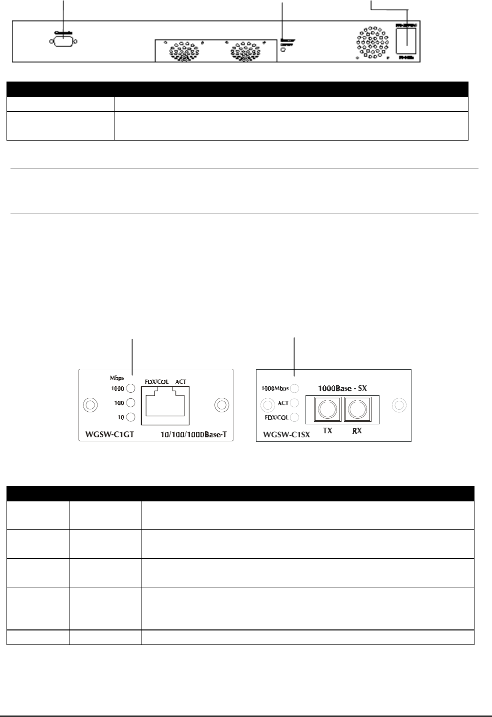 WGSW-C1GT Module Status LEDs WGSW-C1SX Module Status LEDs