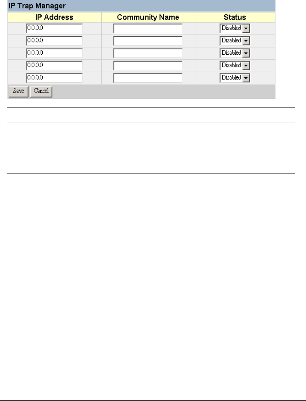 authentication failure messages or other trap messages from the switch. Up to 5 trap managers may be