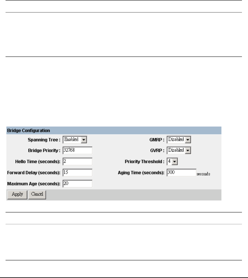 The Bridge menu is used to configure settings for the Spanning Tree Algorithm, as well as the global