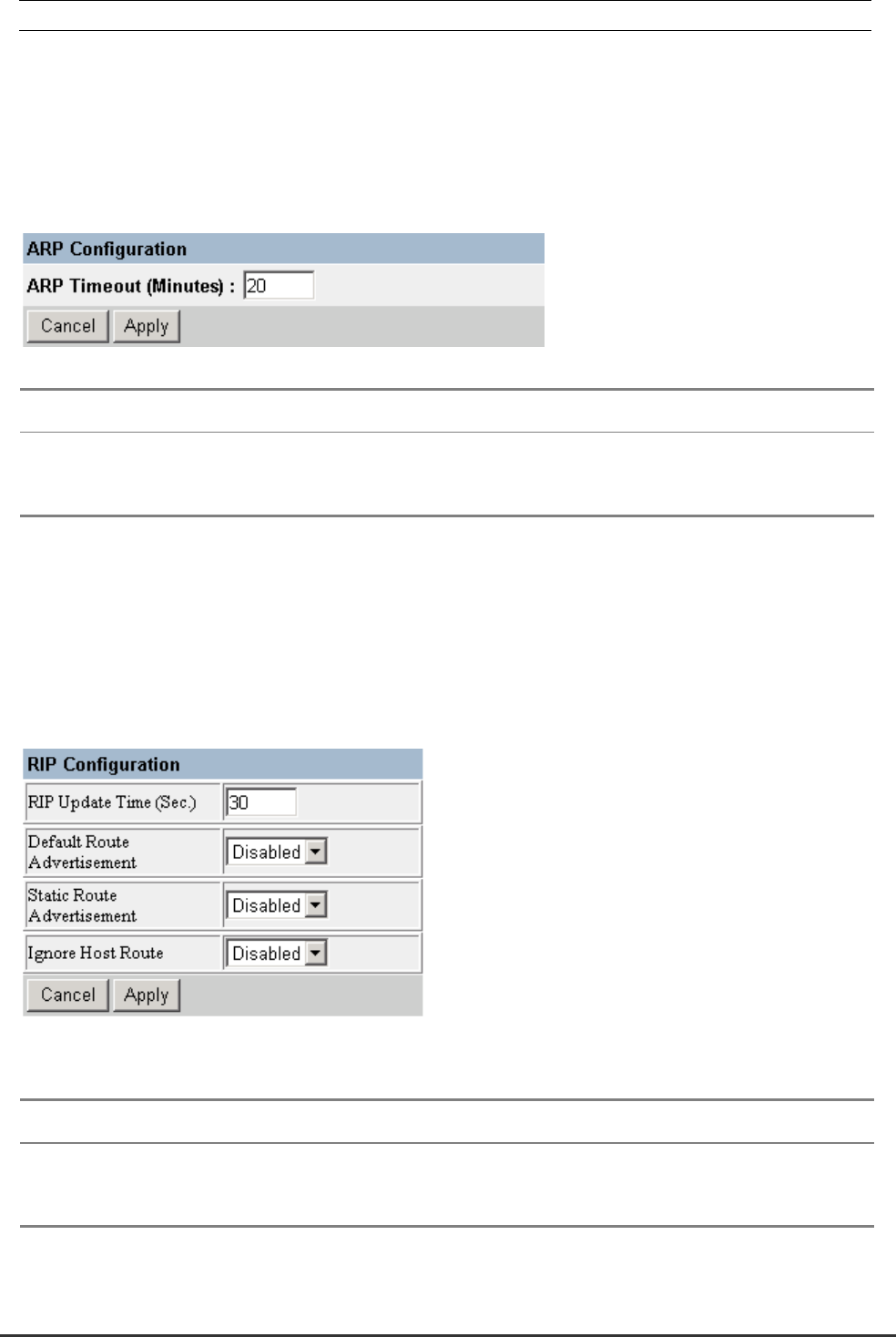 ARP Timeout 20 minutes The time that dynamically learned entries are retained in the ARP cache.