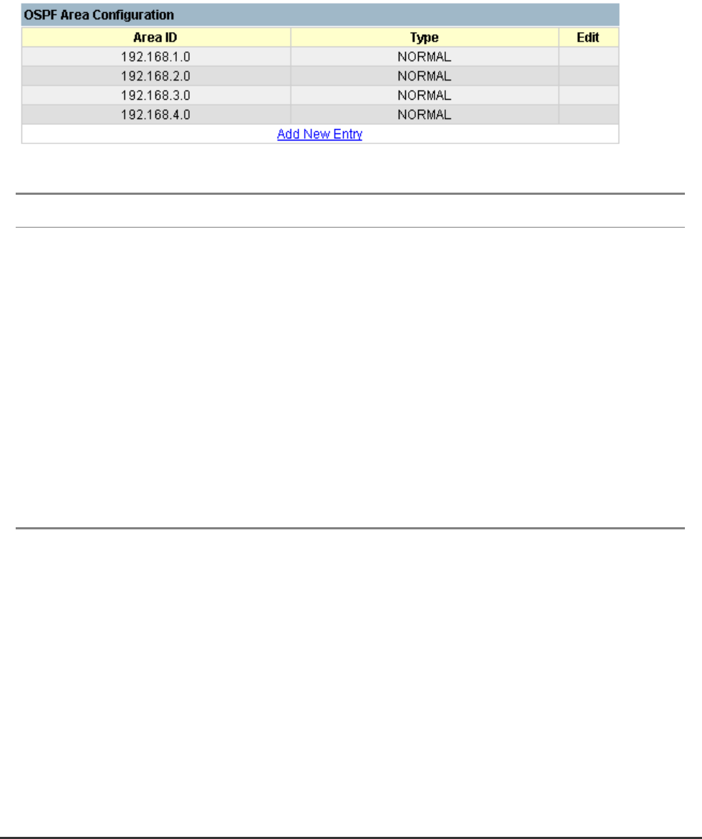 specify the Area ID in this table. Each entry in this table identifies a logical group of OSPF routers that