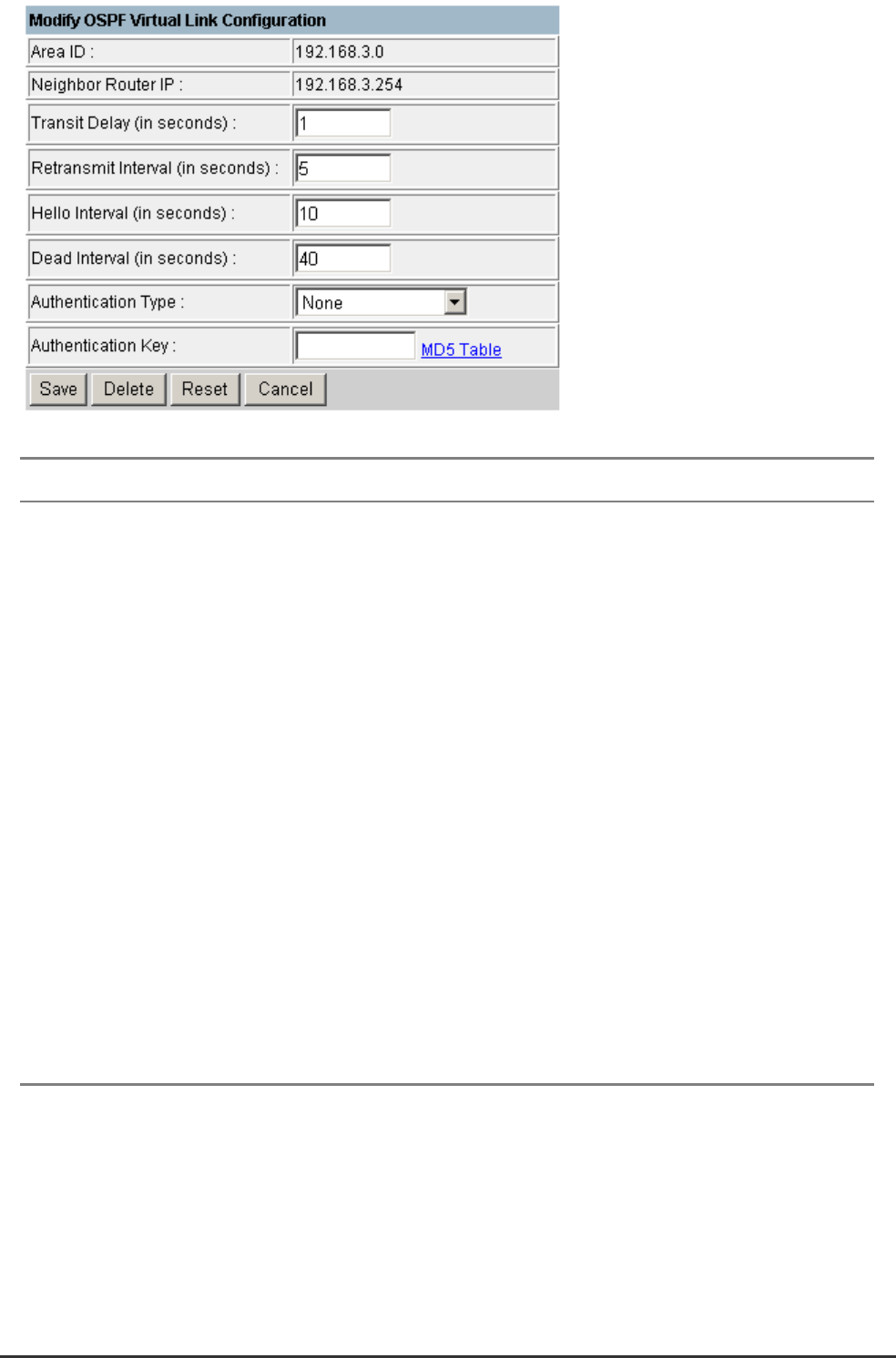 Neighbor IP The IP address of the OSPF router on this end of the virtual link.