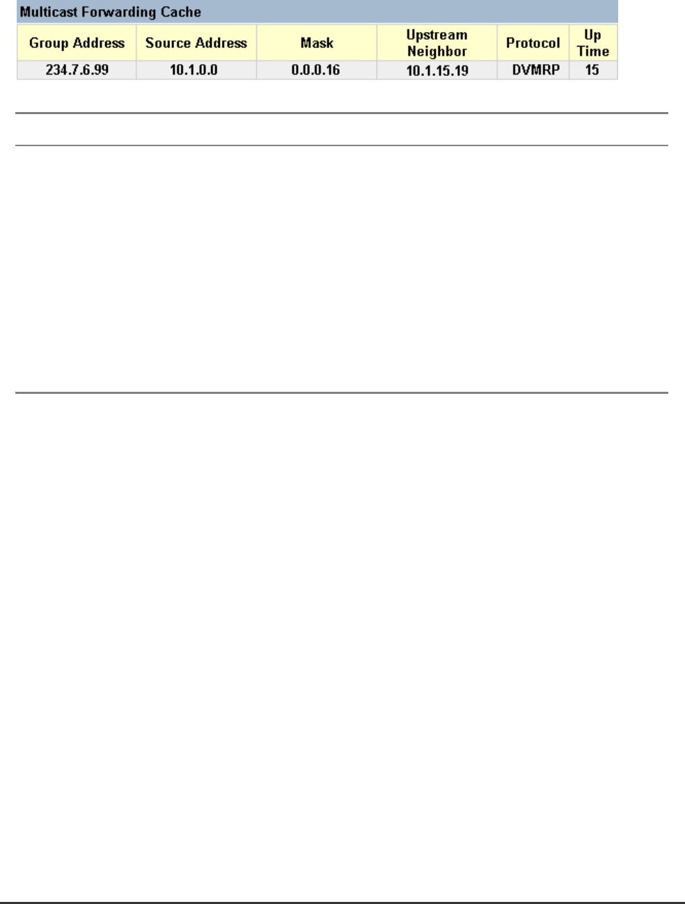 routing protocols. The Multicast Forwarding Cache includes the subnetwork that contains the multicast