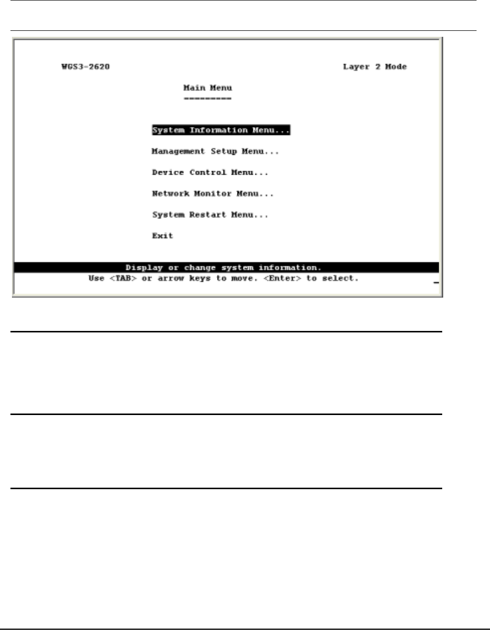 switch and all its ports, or monitor network conditions. The figure below of the Main Menu and the