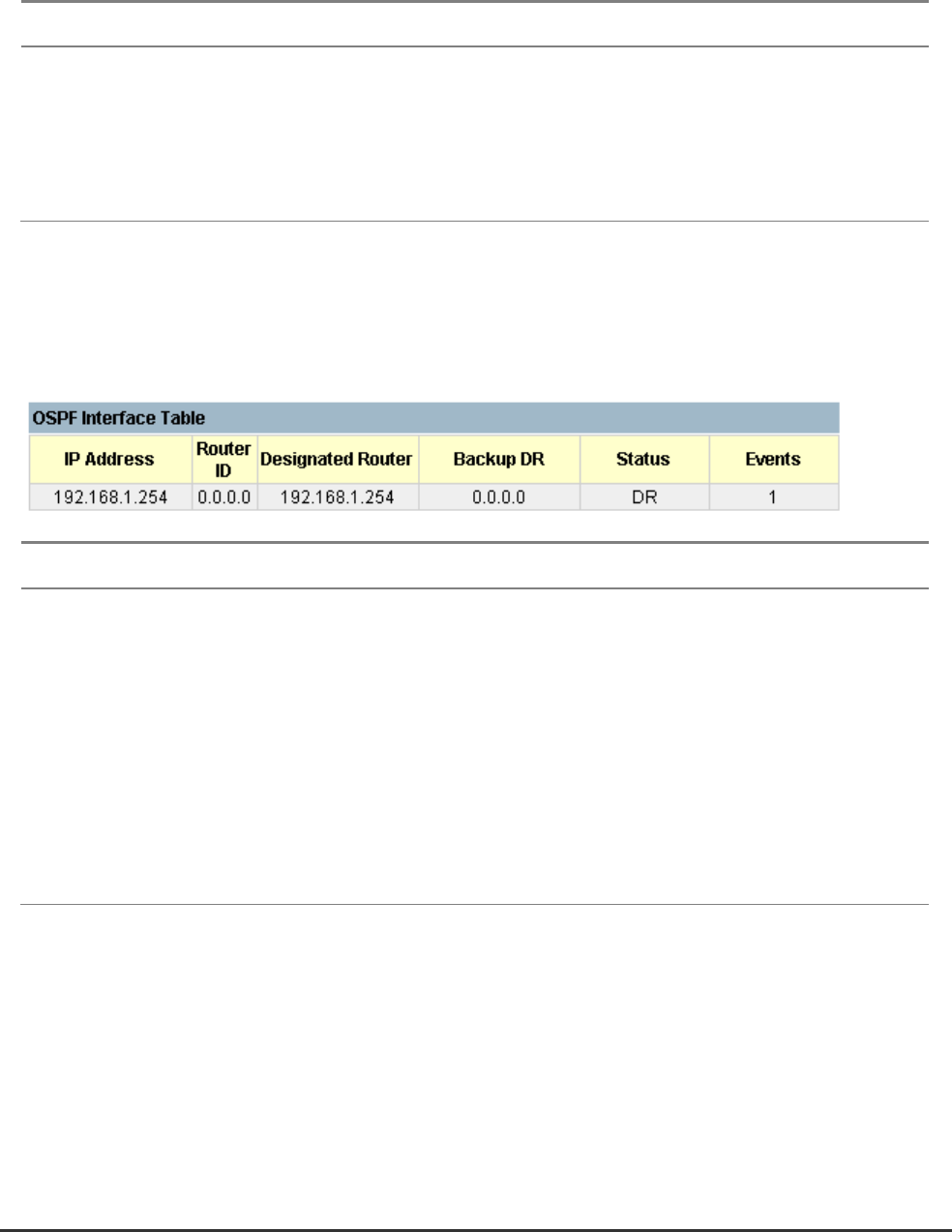 Neighbor Table Displays current neighbor routers.