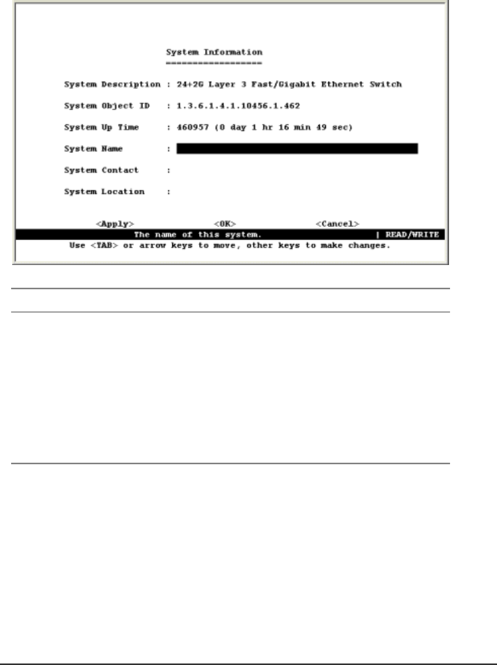 System Object ID MIB II object identifier for switch’ s network management subsystem.