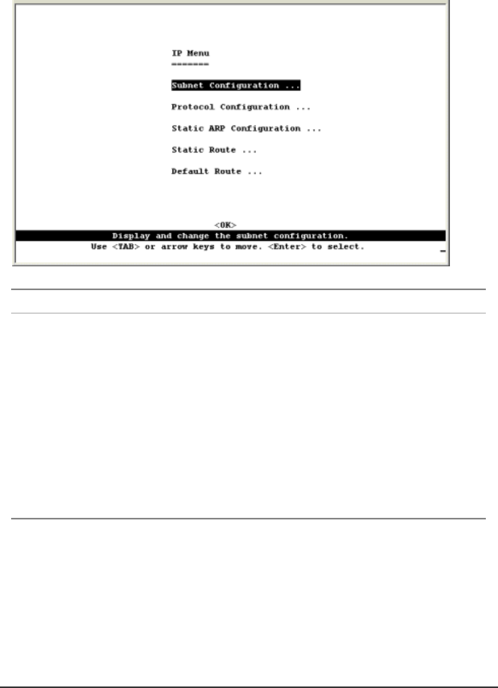 Subnet Configuration Specifies the IP interface for VLANs configured on this switch, including the