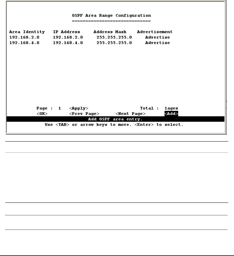 NOTE: To add a new OSPF Area Range, use the <Add> button. To delete an existing range, highlight