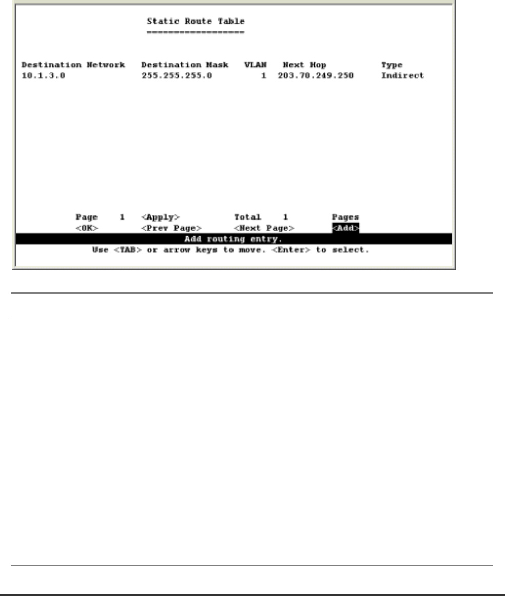 switch. Static routes take precedence over dynamically learned routes, and remain in the table until you