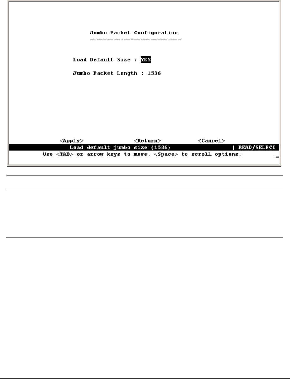Load Default Size YES Select YES to use default packet size: 1536. To enable Jumbo