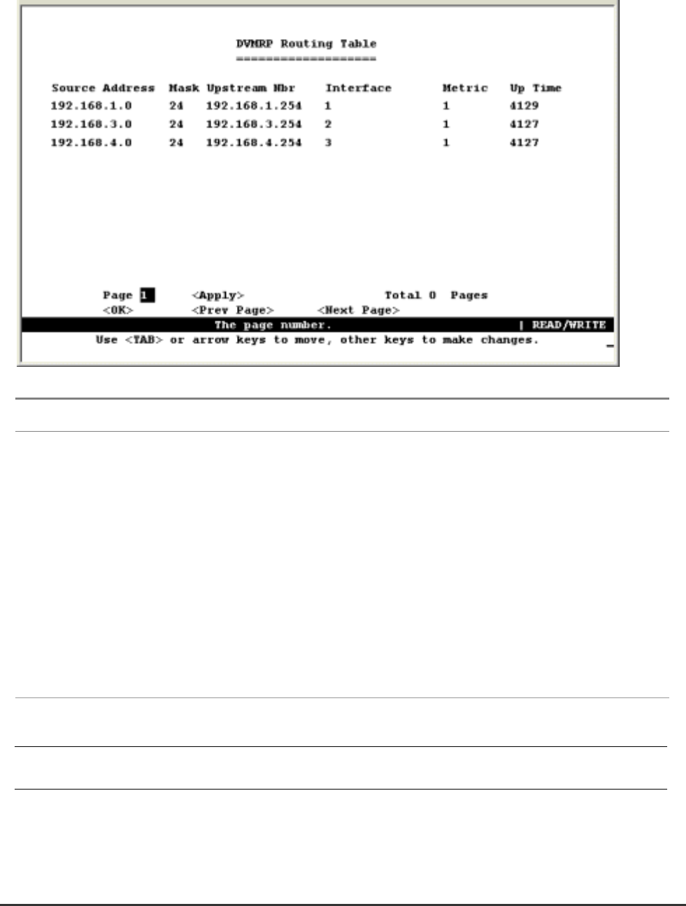 The DVMRP Routing Table contains all the IP multicast routes learned by the DVMRP protocol. The