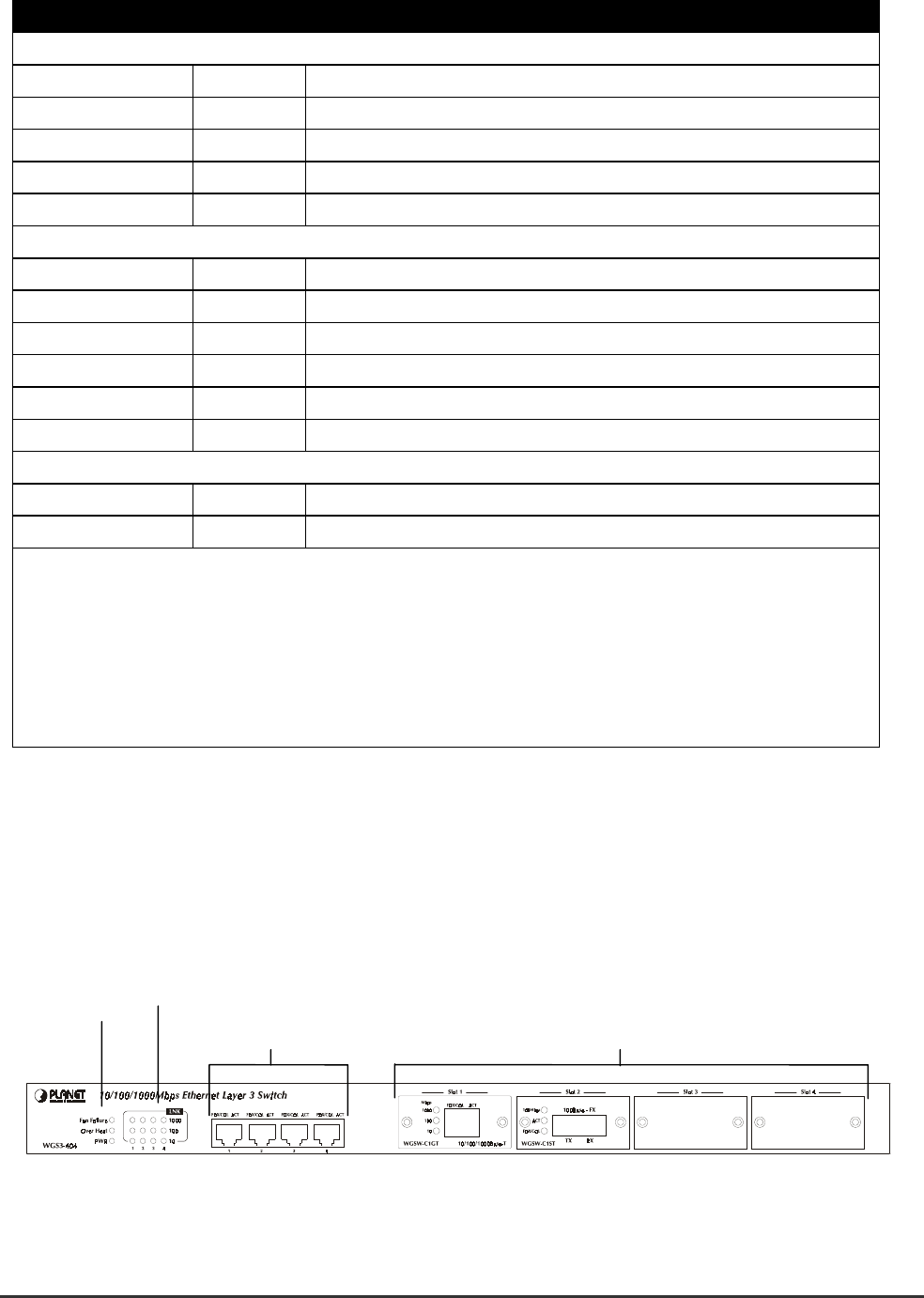 The front panel of the WGS3-404 has 4 RJ-45 ports for 10/100/1000 Mbps in the middle. The port status